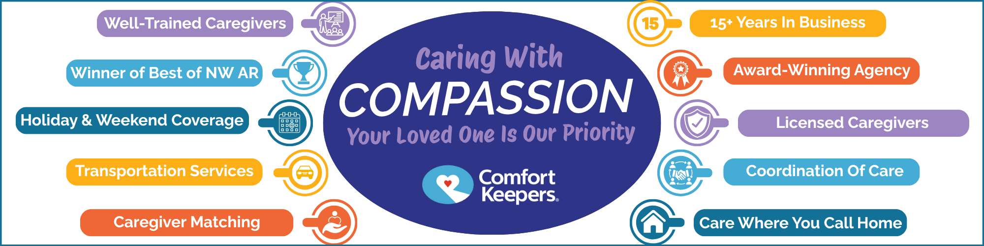 Welcome to Comfort Keepers of Bentonville, Arkansas, where warm hearts and helping hands are always ready to support you and your family! We are proud to offer industry-leading in-home care services, including companion care, homemaking assistance, 24-hour care, and respite care. Our team is also trained to provide professional dementia care in Bentonville, AR, helping seniors live fulfilling lives while maintaining safety and independence.