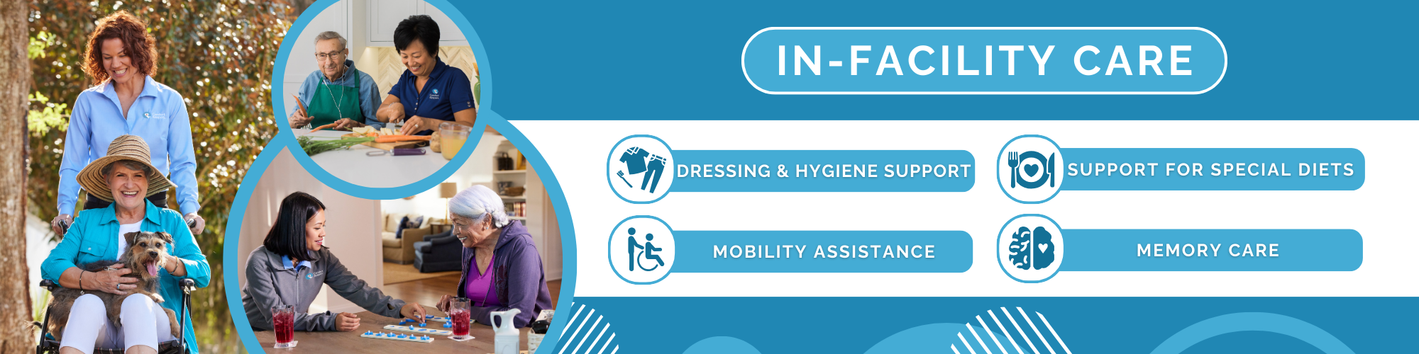 In-facility care helps seniors manage daily tasks with care and respect. Services often include: