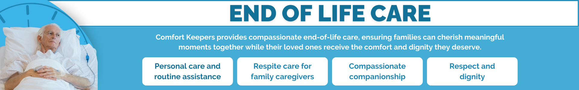 As our loved ones near the end of life, families often face a mix of emotions, love, gratitude, worry, and the desire to make their final days as peaceful and meaningful as possible. At Comfort Keepers, caregivers play a profound role during this chapter, offering comfort, dignity, companionship, and support. Our commitment is to ease the journey for both the older adult and the family, helping make each day gentle, connected, and respectful.